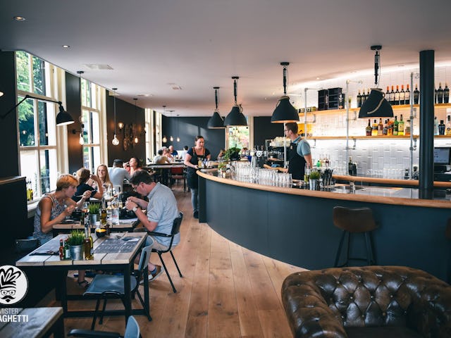 In Mister Spaghetti worden vijf soort spaghetti geserveerd, inclusief een spelt- en glutenvrije variant. Daarnaast telt het twintig soorten saus. 'We zijn zeker geen traditioneel Italiaans restaurant met rood-wit of groen-wit geblokte tafelkleedjes', aldus Maarten Staps.