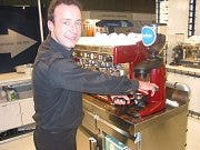 De volgende halte is Jolly Caffé. Freek van der Zalm van D.R. Trading Utrecht BV is nu twee jaar bezig het Italiaanse concept te slijten op de Hollandse markt. Vanuit Utrecht moet het concept als een olievlek het land veroveren. ‘Goed in balans. Zou een tikkeltje sterker mogen’, oordeelt Veldkamp over de genuttigde espresso.