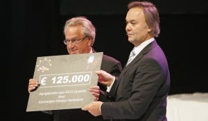 Het bedrag wordt aangeboden aan directeur Jaap Fransman van HVO Querido, een organisatie die zich inzet voor dak- en thuislozen.