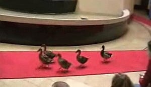 "De eenden lijken gelukkig in hun nieuwe onderkomen", stelt duckmaster Jason Senat. "Als ze niet blij zijn laten ze dat iedereen weten."