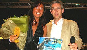 Tiemissen-Zwaan ontving haar prijs, een cheque voor een geheel verzorgde 14-daagse tropische strandvakantie voor 2 personen, uit handen van Hans van der Heijden, Director of Operations, de Carlton Hospitality Award 2008.