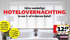 Kruidvat-woordvoerder José Mes laat weten dat voor uitbreiding is gekozen om de actie aantrekkelijker te maken voor klanten. Die hebben nu keuze uit meer dan 125 hotels, tegen 48 in de actie van september vorig jaar. ‘Daarnaast is nu ook in de lente en de zomer te boeken’, beschrijft Mes de uitbreiding van de actie. ‘Voor dezelfde lage prijs.’