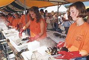 Ook voor de bakjes mosselen, die tot enkele jaren geleden nog gratis waren, stonden zaterdag lange rijen.
