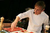 Hij maakte een combinatie van vlees en vis: Ierse Hereford-entrecôte gecombineerd met Schotse langoustinestaartjes. Apart was de afronding met gezouten citroen.