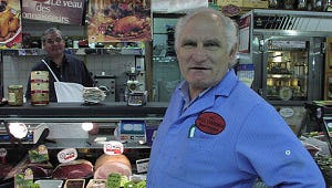 Naast de Parijse slager Caillaud zijn ook Jean Pierre Gajan (directeur Gasconne stamboek Frankrijk) en Jean Matayron (President Porc Gascon) aanwezig.