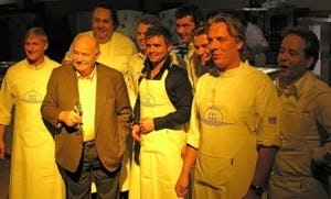 Zondagavond kookten vier driesterrenchefs voor bijna duizend genodigden: Michel Troisgros (de zoon van), Michel Bras, Olivier Roellinger en Michel Guérard.