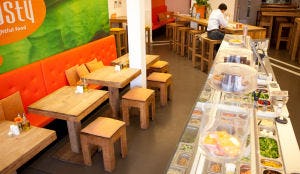 ‘Zo geeft ons mangosap een happyboost en helpt aardbei bij concentratie. Alle producten zijn vers, zonder conserveringsmiddelen. Binnenkort beginnen we een proef met een biologisch schap.’