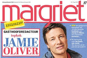 Hoofdredacteur Leontine van den Bos van Margriet ziet Jamie Oliver als een van de meest gedreven koks ter wereld. ‘Hij inspireert mensen om van koken te genieten en het weer leuk en gezond te maken,’ voor Margriet reden genoeg om hem te vragen als gasthoofdredacteur van nummer 17, 2012, 20 april.