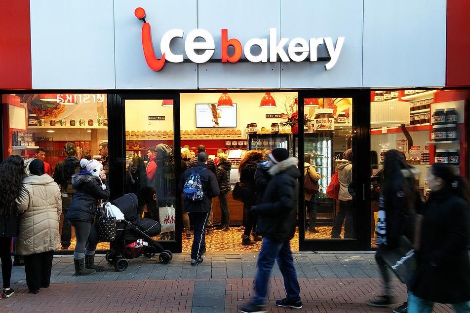 Ice Bakery levert ijs, koffie, bonbons, makarons, crêpes, stroopwafels milkshakes et cetera op basis van Nutella hazelnootpasta. In augustus 2014 opende eigenaar Kiro Holding in samenwerking met conceptbedenker Roberto Fava zijn eerste Ice Bakery aan de Leidsestraat in Amsterdam. Fava bedacht het concept om ook in de winter ijs te verkopen. Niet veel later kwamen daar twee nieuwe filialen aan de Nieuwendijk bij. Onlangs opende nummer vier aan de Kalverstraat en zaterdag 21 maart nummer vijf aan het Rokin 134.