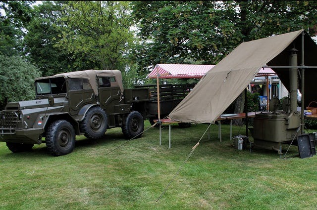 Het culinaire duo is via een website in te zetten voor feesten en partijen, waar zij desgewenst verschijnen met een industriële buitenkeuken. Deze stoere veldkeuken wordt voortgetrokken door een DAF legervoertuig uit 1955.
