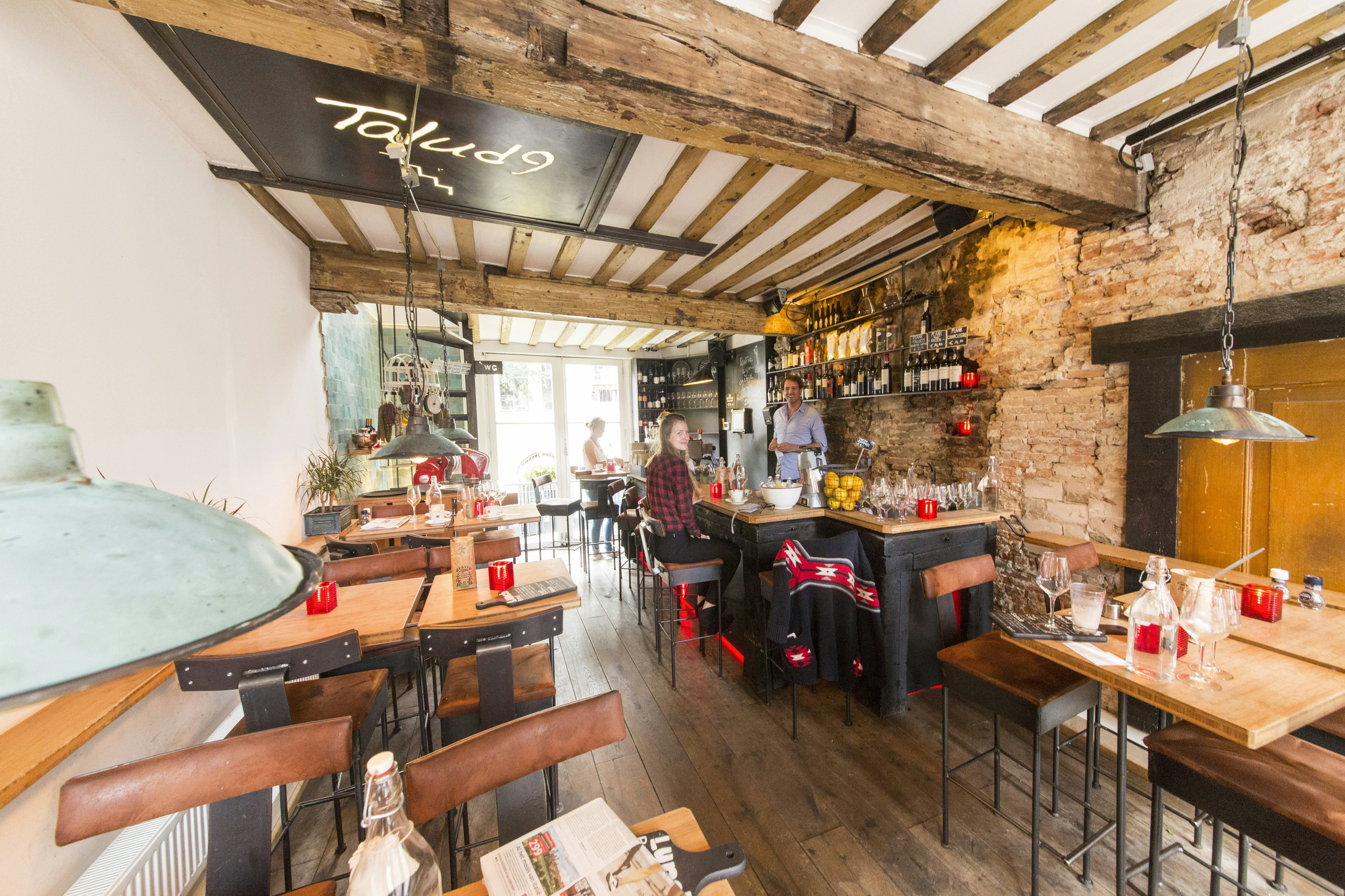 Van de robuuste zelf gelaste krukken tot de vintage lampen, van de charcuteriehoek tot de ruw afgebikte bakstenen muur achter de bar. Het klopt, zonder gemaakt te zijn. Het voelt écht, en mede daarom is Talud9 dit jaar uitgeroepen tot Mooiste Koffievenue.