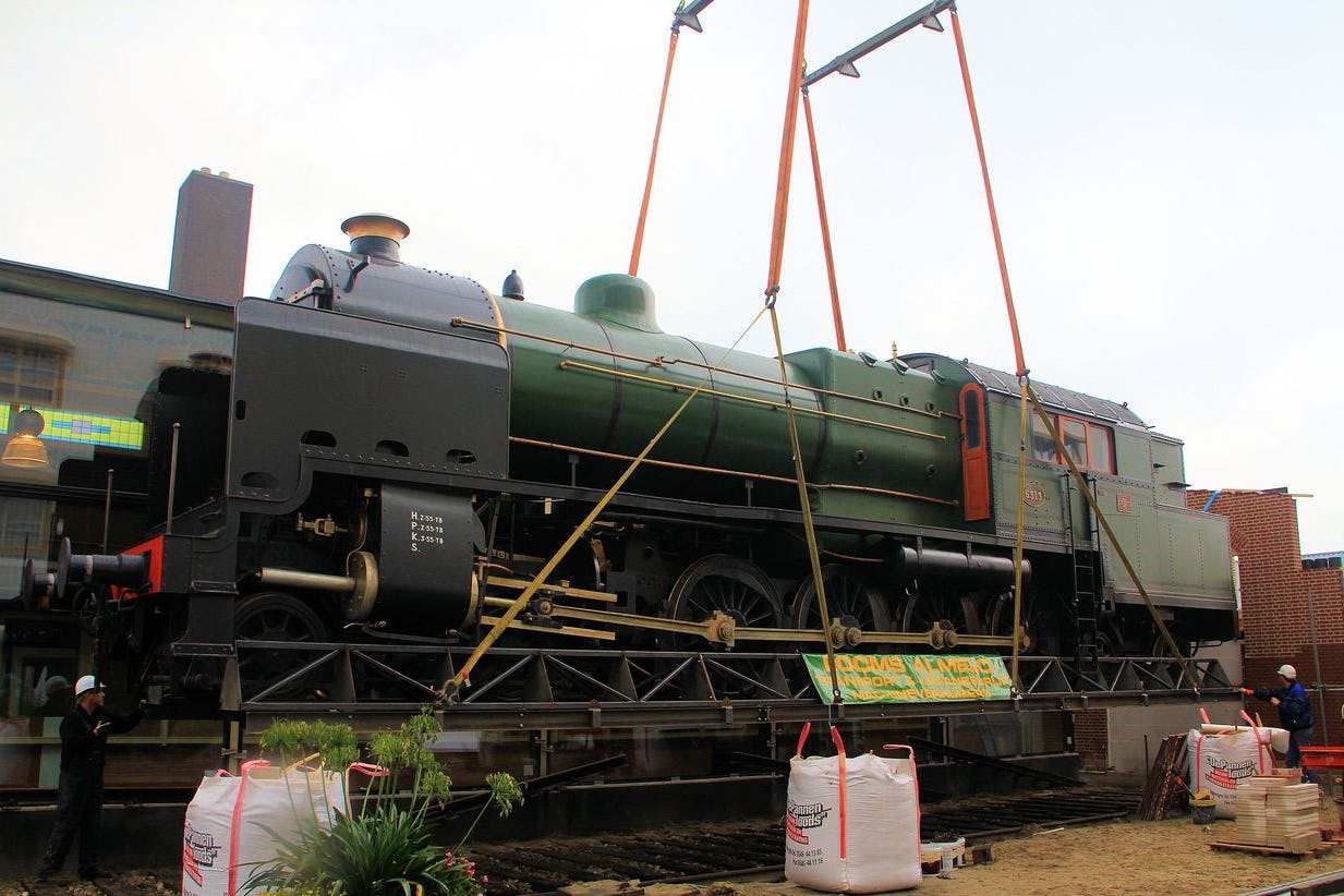 Aan de 17,5 meter ‘Loc 6313’ is ruim twee jaar gewerkt. Deze week is het gevaarte vanuit de werkplaats met een dieplader en een kraan naar een prominente plek in het hotel verplaatst.