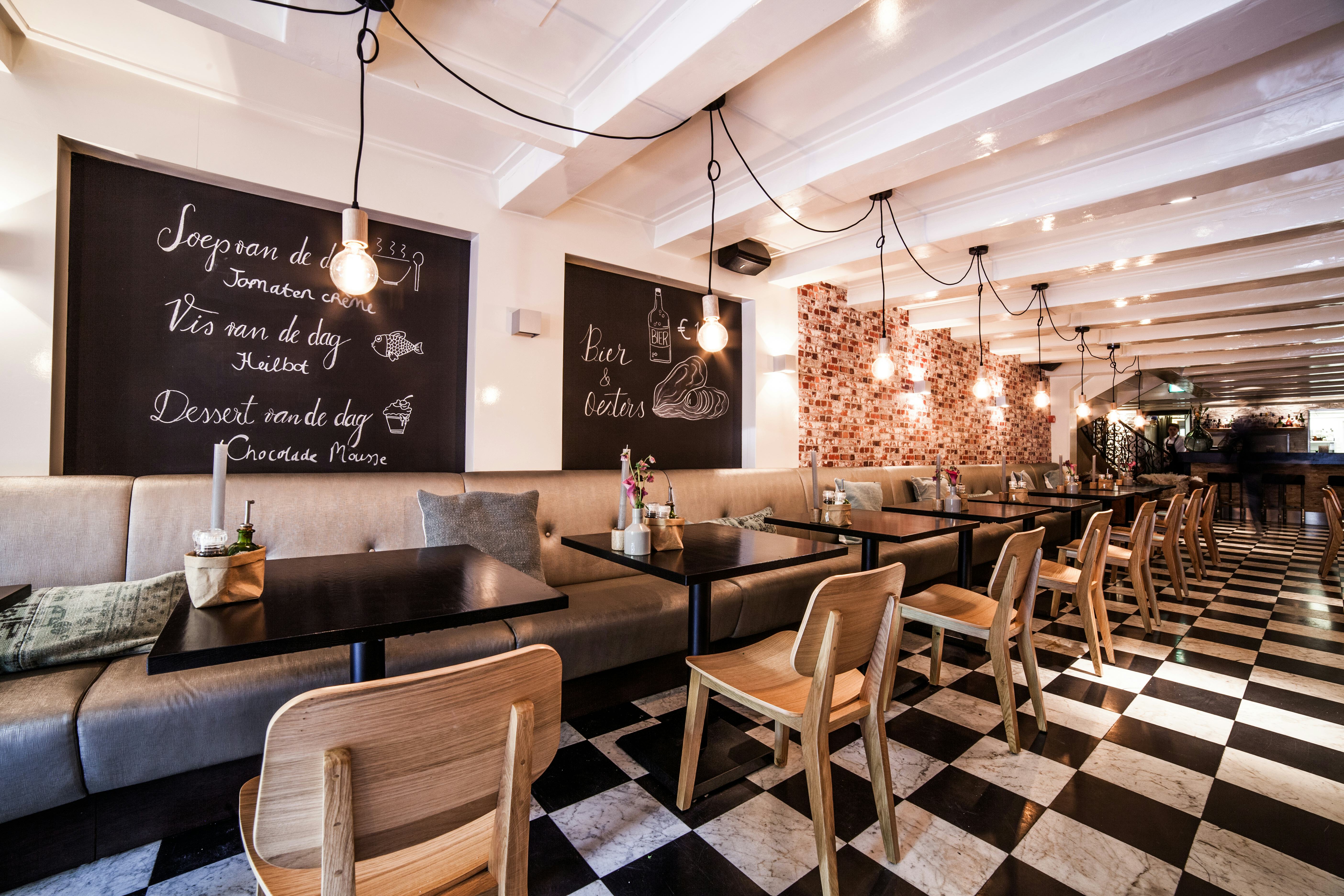 Het geeft het restaurant, dat een paar treden onder straatniveau gelegen is, een open karakter met een bepaalde ongedwongenheid. Dezelfde toegankelijke stijl keert terug op de bovengelegen etage, in de aan de gracht gelegen private dining en vergaderzaal.