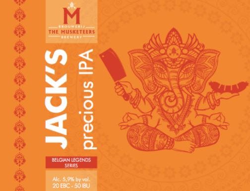Op het etiket heeft Ganesha een koksmes en een worst in zijn handen en op zijn hoofd is het brouwerijlabel te zien. 'Ganesha wordt zeer diep vereerd in het hindoeïsme en moet vereerd worden in tempels of schrijnen bij mensen thuis, en niet uit commerciële hebzucht worden gebruikt om bier te verkopen', betoogt Zed. 'Ganesha verbinden aan een alcoholische drank is bovendien zeer respectloos.'
