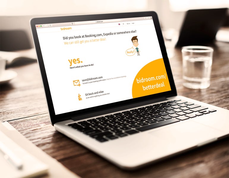 De slogan van Bidroom is hetzelfde hotel voor een betere prijs. Bij de website kunnen gebruikers kosteloos een betere prijs krijgen op een boeking die ze al hebben gemaakt bij Booking.com, Expedia en Hotels.com. Gebruikers sturen Bidroom via e-mail, save@bidroom.com, hun reserveringsbevestiging. Het bedrijf genereert vervolgens op het eigen platform een lagere prijs met dezelfde kamervoorwaarden. Gebruikers krijgen dan direct een nieuwe reservering bij hetzelfde hotel en kunnen vervolgens de oude reservering annuleren (dit geldt alleen voor reserveringen met gratis annuleringen). Bidroom garandeert een prijs die 5 tot 15 procent lager is dan de originele reservering bij Booking.com, Expedia of Hotels.com.