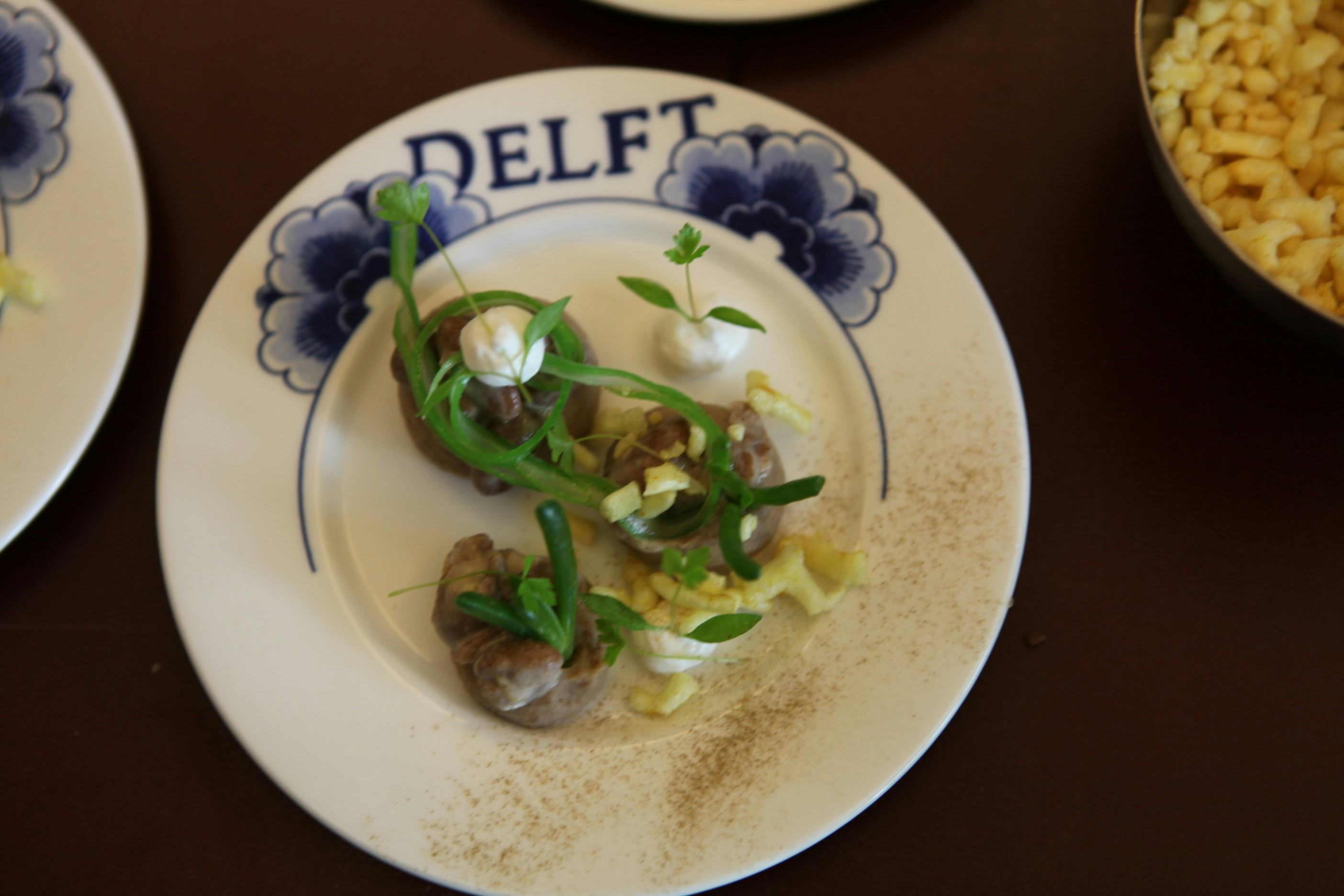 Een van de gerechten was ‘blote billen in het gras’, een combinatie van woudbonen, snijbonen en champignons. Rob Baan, directeur Koppert Cress: 'Voeding is niet alleen economie, voeding is gezondheid.' Tijdens een prikkelende presentatie riep hij de studenten op om een bijdrage te leveren aan gezond eten.