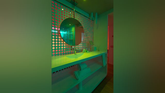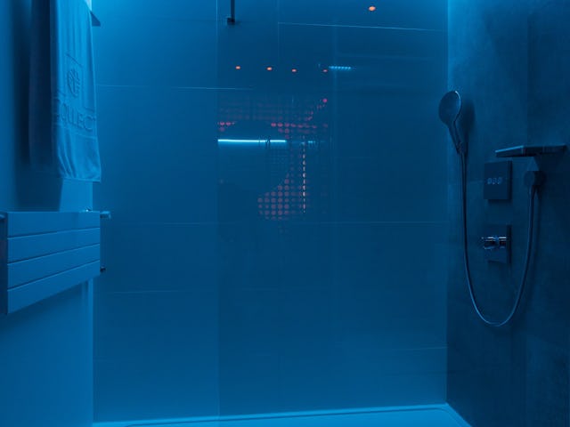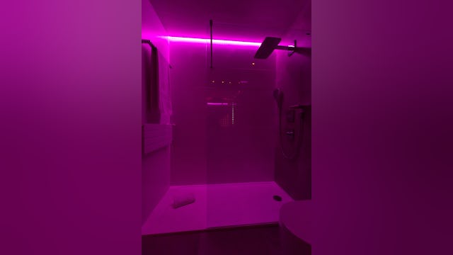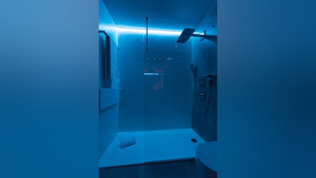 Als onderdeel van de Mood Room-ervaring kan ook de sfeer onder de douche worden aangepast aan de behoeften en emoties van de gast. Met de Emotional Shower kunnen geluid, licht en de waterstroom worden afgestemd op wat de gast wil: een ontspannende douche of juist een energieboost om de dag goed mee te beginnen.