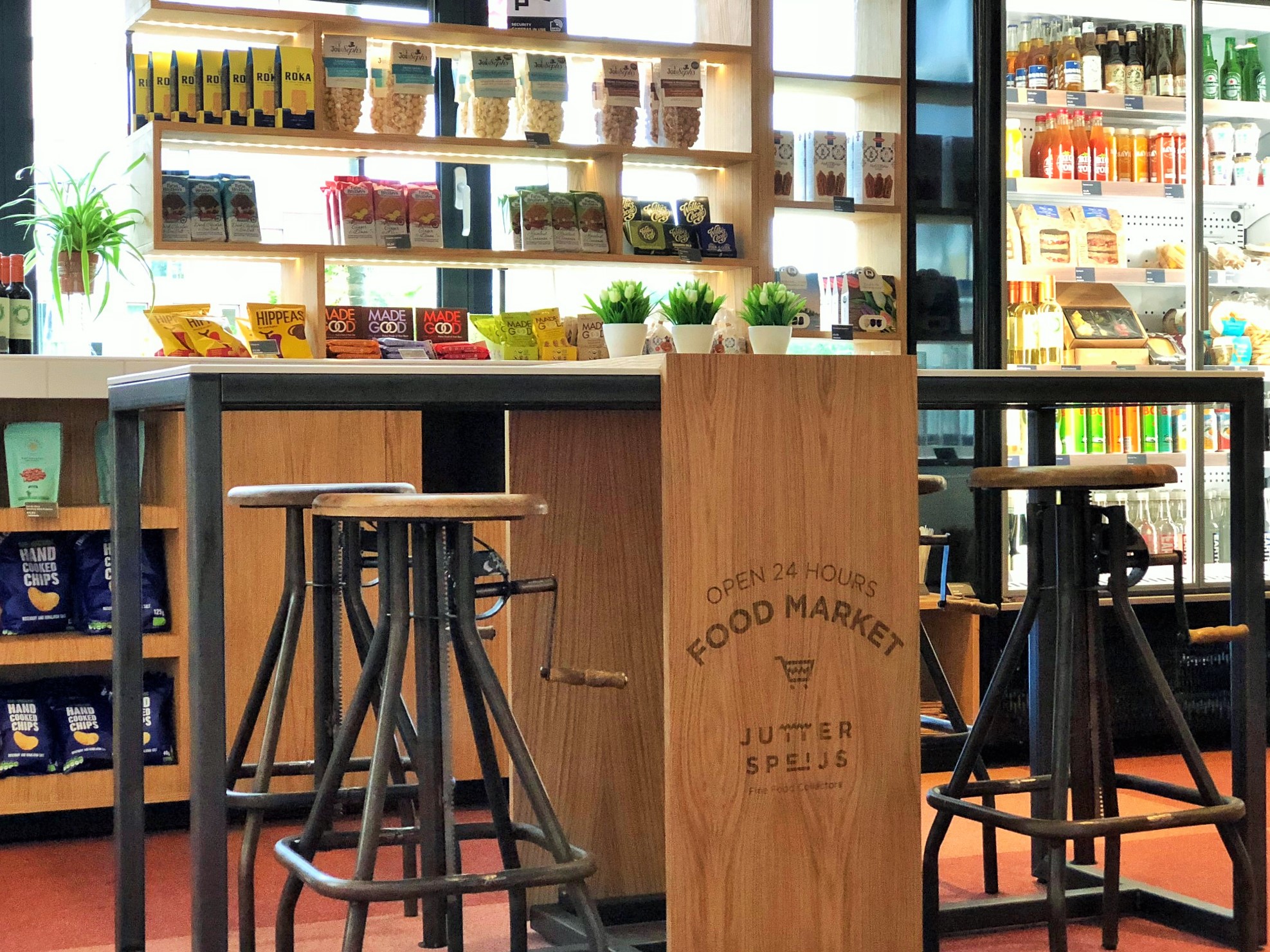 Jutter Speijs biedt een concept dat in 2017 de prijs voor beste startup won. Dankzij de inzet van nieuwe technologie heeft de onbemande winkel een self-payment faciliteit. Hierdoor is de winkel 24/7 open. De winkel biedt een open en sfeervolle beleving. Gasten genieten in een ontspannen plek van een ruim aanbod aan drankjes, eten en aanverwante producten. Jutter Speijs zorgt ervoor dat de producten in de food market regelmatig worden vernieuwd, zodat alle producten altijd vers en beschikbaar zijn.