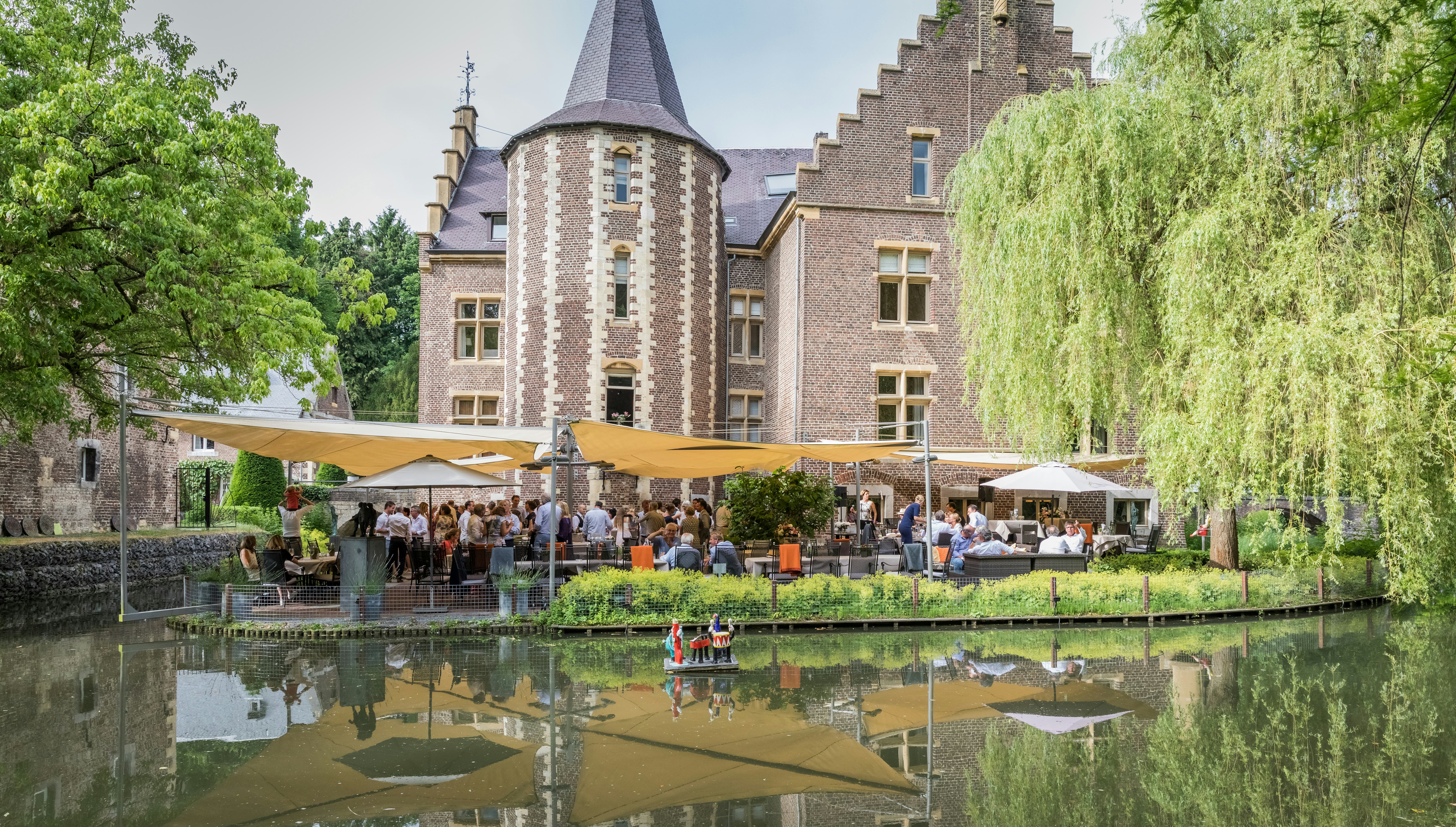 Het gaat om het beste terras bij de Terras Top 100 2018, niet het mooiste. Maar ook de vakjury ontkomt niet aan de schoonheid van Kasteel TerWorm en het terras. Aan de gracht die rondom het prachtig gerestaureerde kasteel loopt, zit je rustig, comfortabel en in het groen.