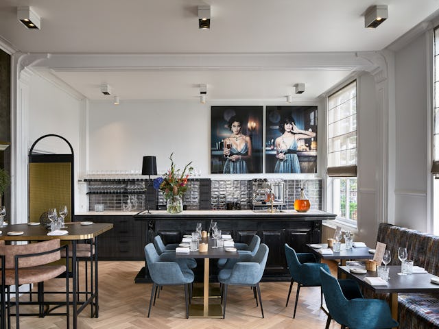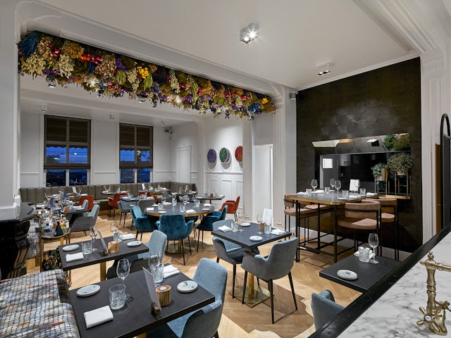 Grootscholten omschrijft zijn nieuwe zaak als een restaurant met een ‘warme huiselijke sfeer. Met een vleugje nostalgie. We hebben luxe stoffen gebruikt zoals fluweel. Kleurnuances en natuurlijk de bloemen.’ Sharon Tettero voegt er aan toe: ‘Na acht jaar waren we toe aan een interieur dat aansluit bij wat we hier neerzetten.’