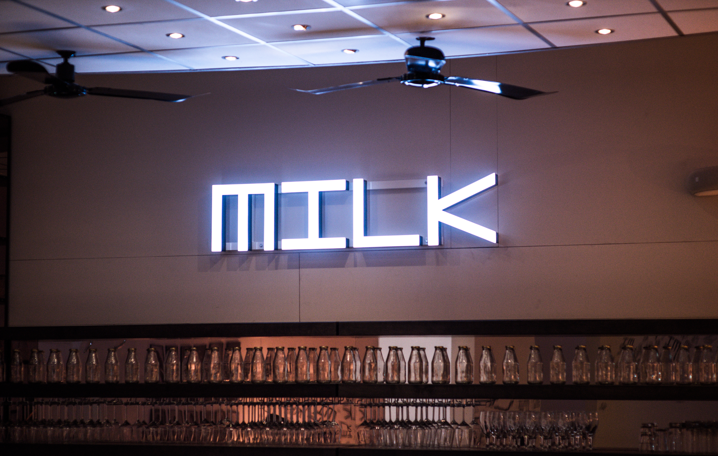 De gerechten worden bereid met moderne kooktechnieken. Milk maakt zoveel mogelijk gebruik van lokale producten als brood, vis, vlees, groente en gedistilleerde dranken en wijnen. Het assortiment op de kaart (te denken aan een Galaxy Burger) is daarnaast veelal biologisch en zal om de drie maanden wisselen.