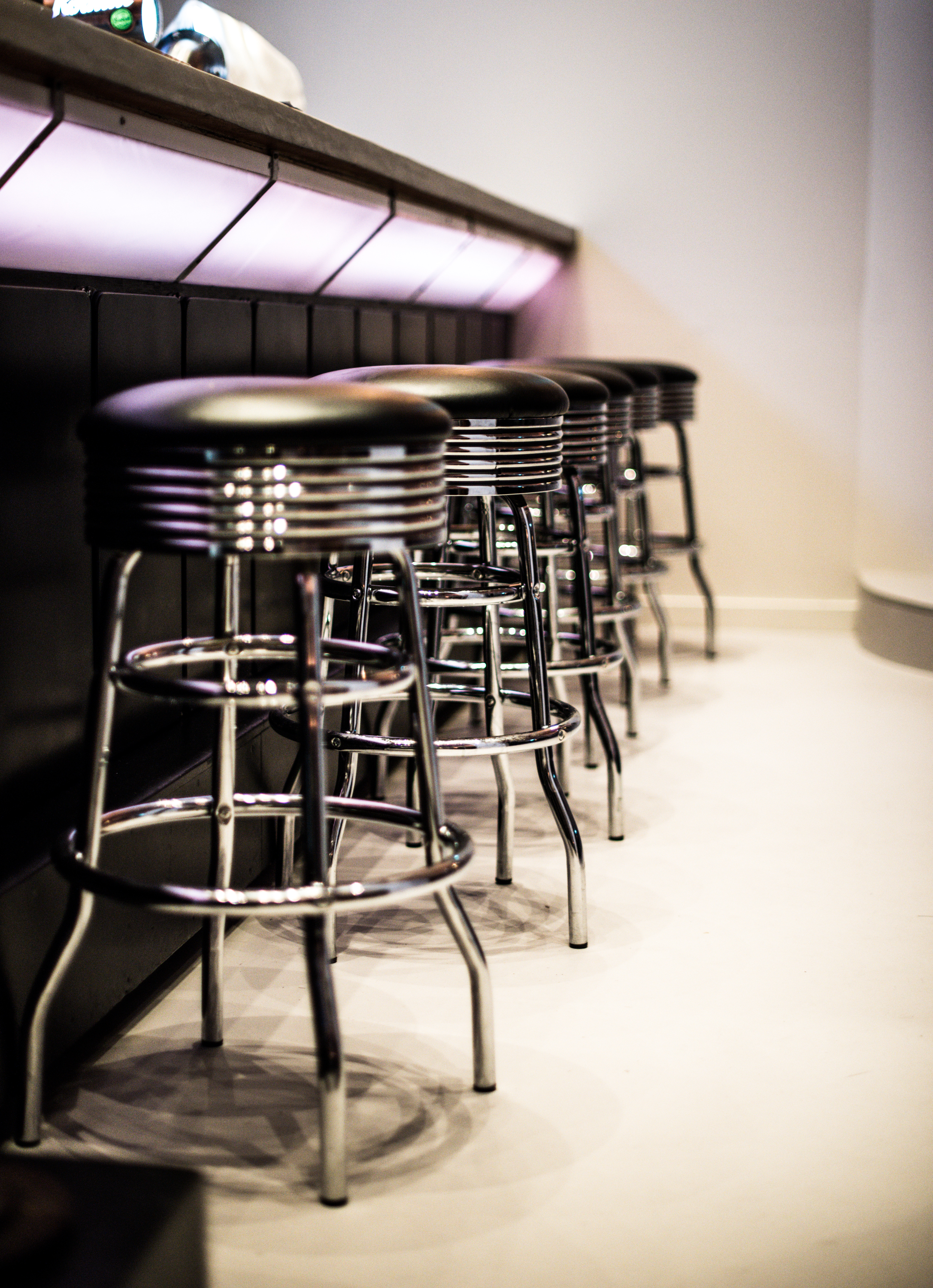 Ontwerpbureau SWEET, onder leiding van Tanja Soeter (o.a. bekend als creative director van HEMA), heeft als inspiratie voor het interieur het concept van een American diner genomen. De look en feel zijn hierdoor iconisch, simpel en rebels, maar ook toegankelijk. Dankzij het zwart/witte kleurgebruik beweegt de ruimte gemakkelijk mee met de dag (van de ochtend tot aan de nacht) en zorgt daarnaast voor contrast met het kleurrijke eten.Interieur