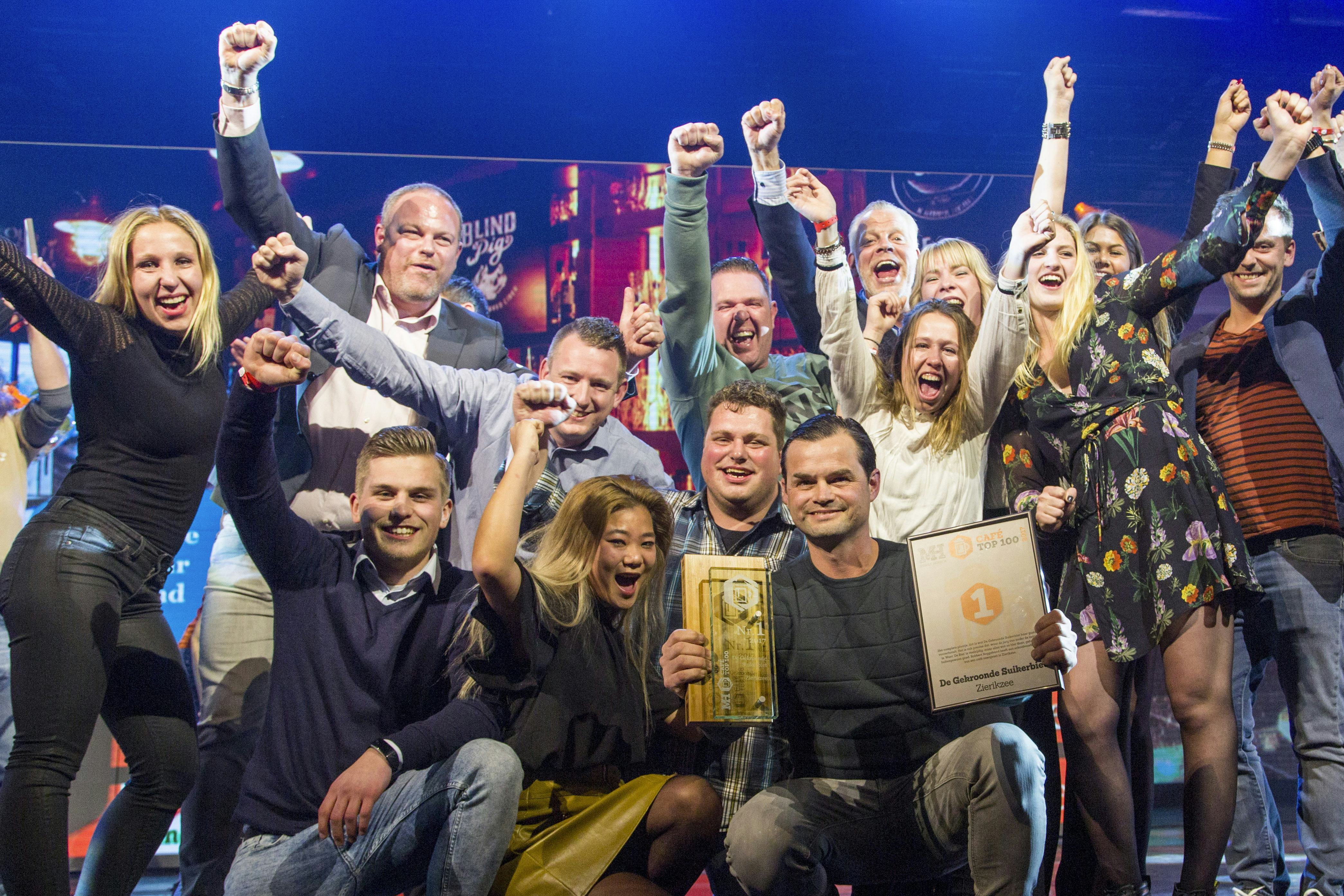 Het team van De Gekroonde Suikerbiet, de winnaar van de Café Top 100 2017.