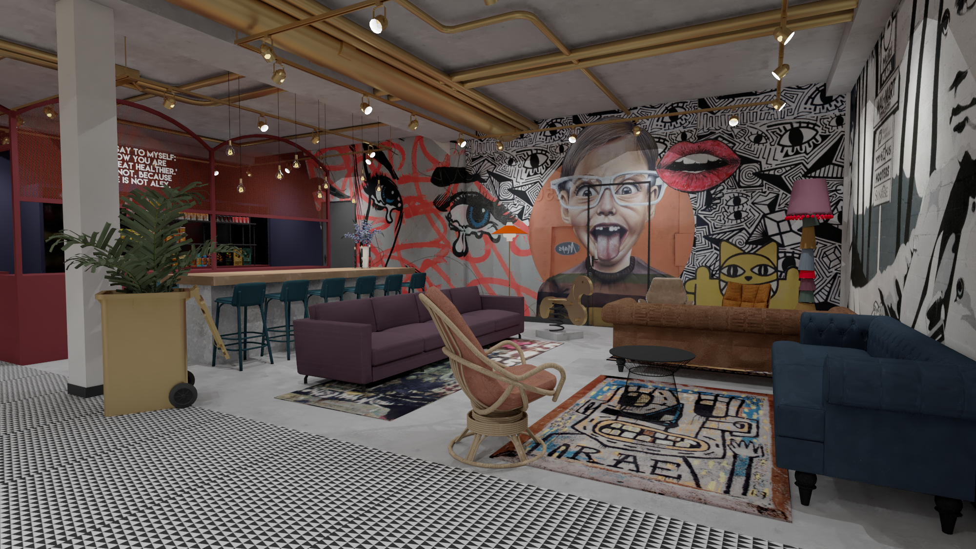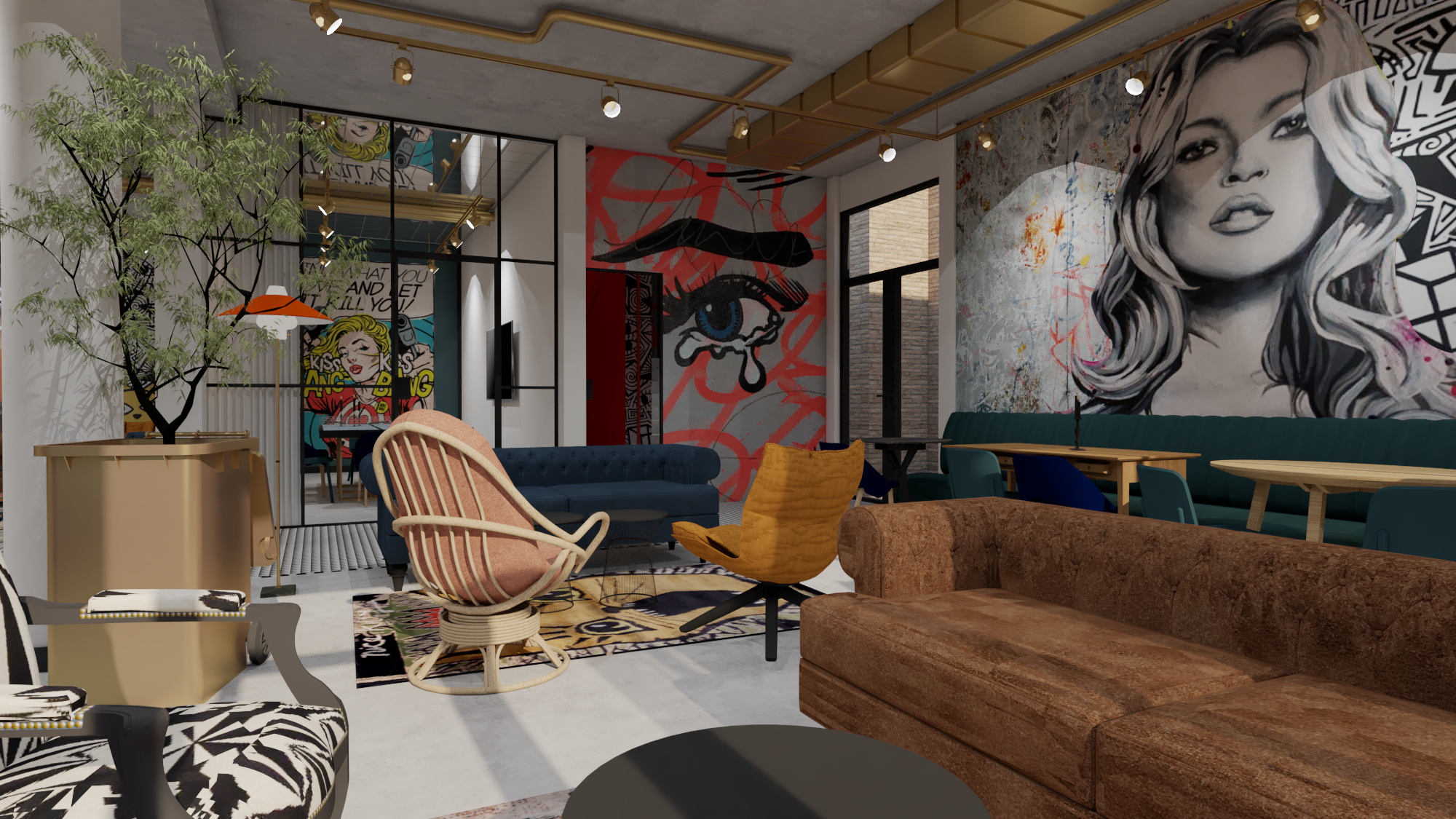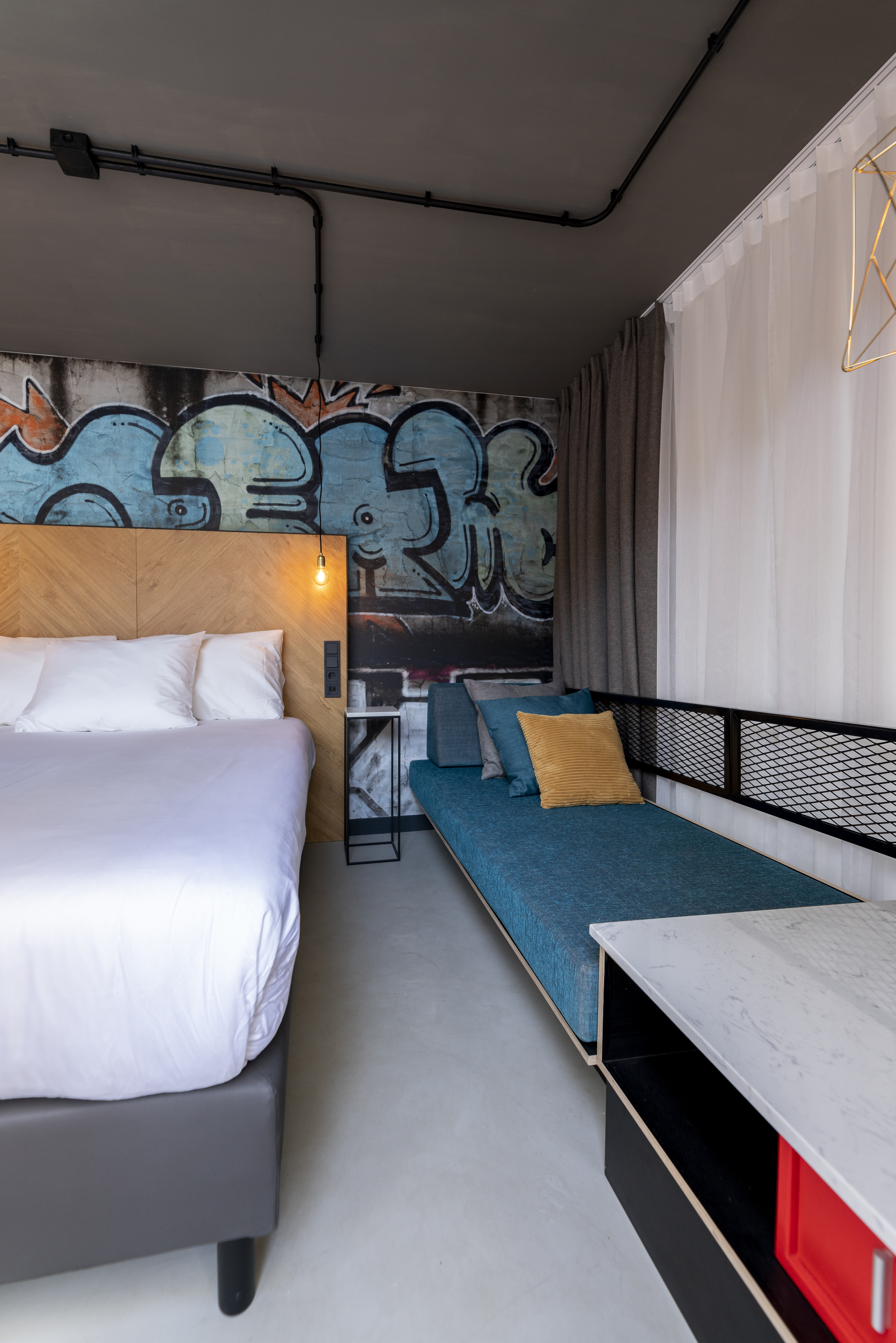 Het design van het hotel is kleurrijk, met zowel in de gemeenschappelijke ruimtes als de kamers veel graffity en streetart.
