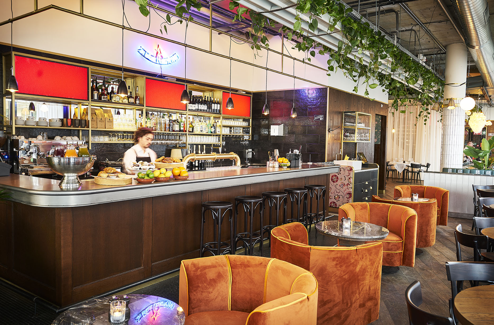 Café Restaurant Publiek heeft een klassieke uitstraling en is zeven dagen in de week geopend van 's ochtends vroeg tot 's avonds laat. 'Of je nu komt voor een kop koffie, sandwich to-go, een krantje aan de bar in het café, voor een snelle zakenlunch of uitgebreid 3 gangen diner in het restaurant.' Publiek is een initiatief van Willem Tieleman en Souad el Hamdaoui, eigenaren van Jamie’s Italian in Rotterdam en Den Haag.