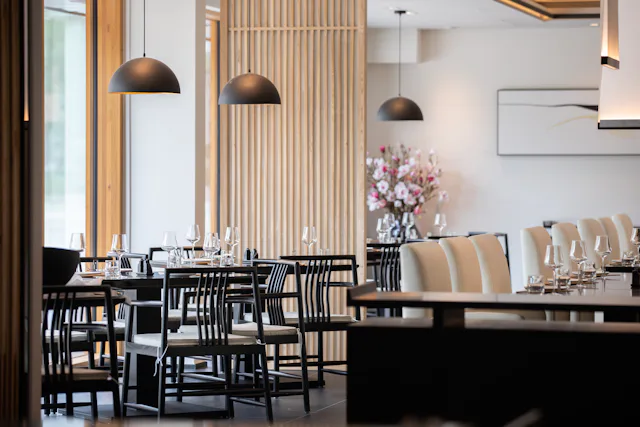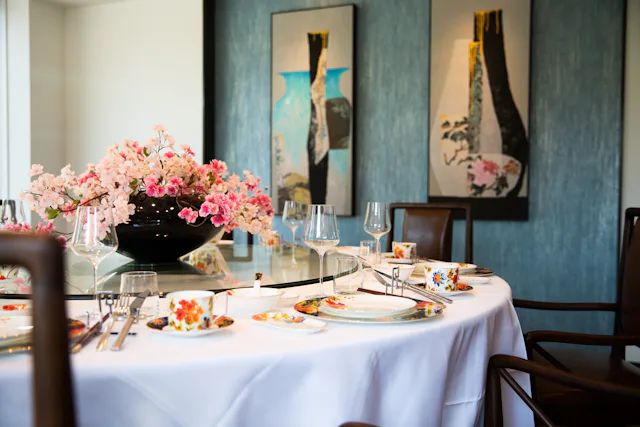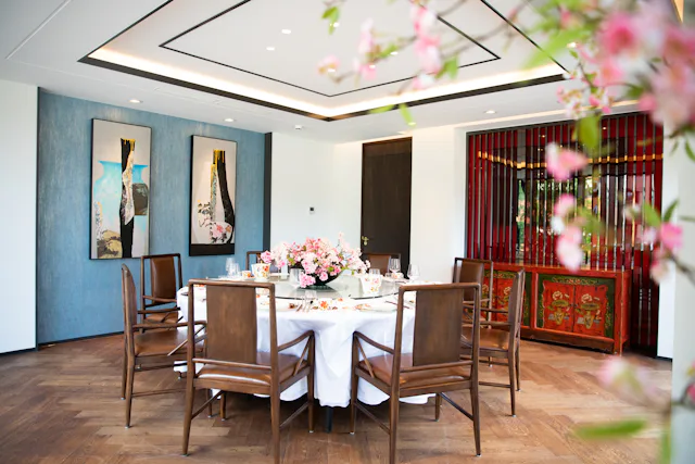 Alle privézalen zijn uitgerust met moderne apparatuur. Op de eerste verdieping bevindt zich een exclusieve bar met patioterras en eveneens nog 4 luxe private dining rooms, elk uitgerust met een eigen sfeerthema.