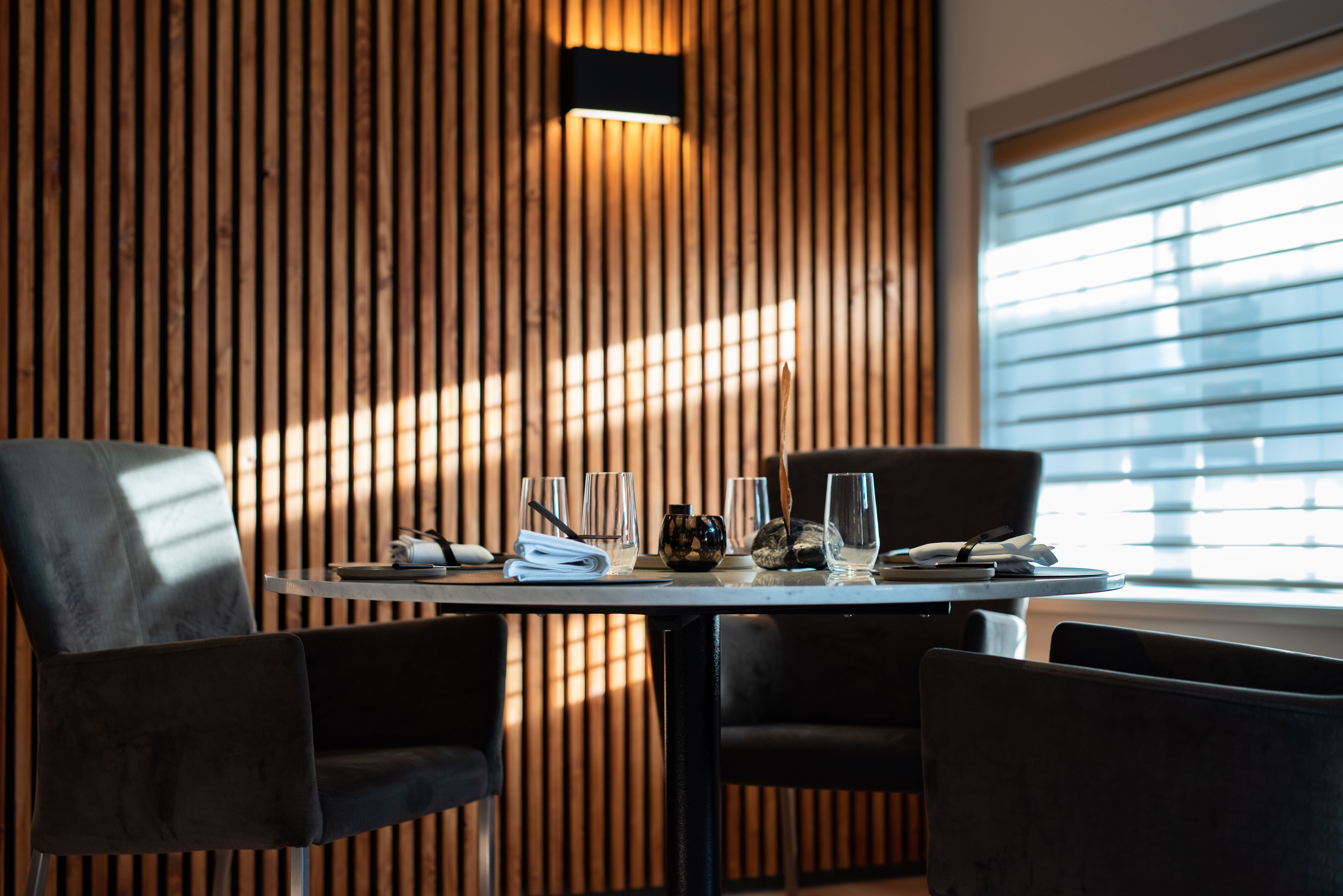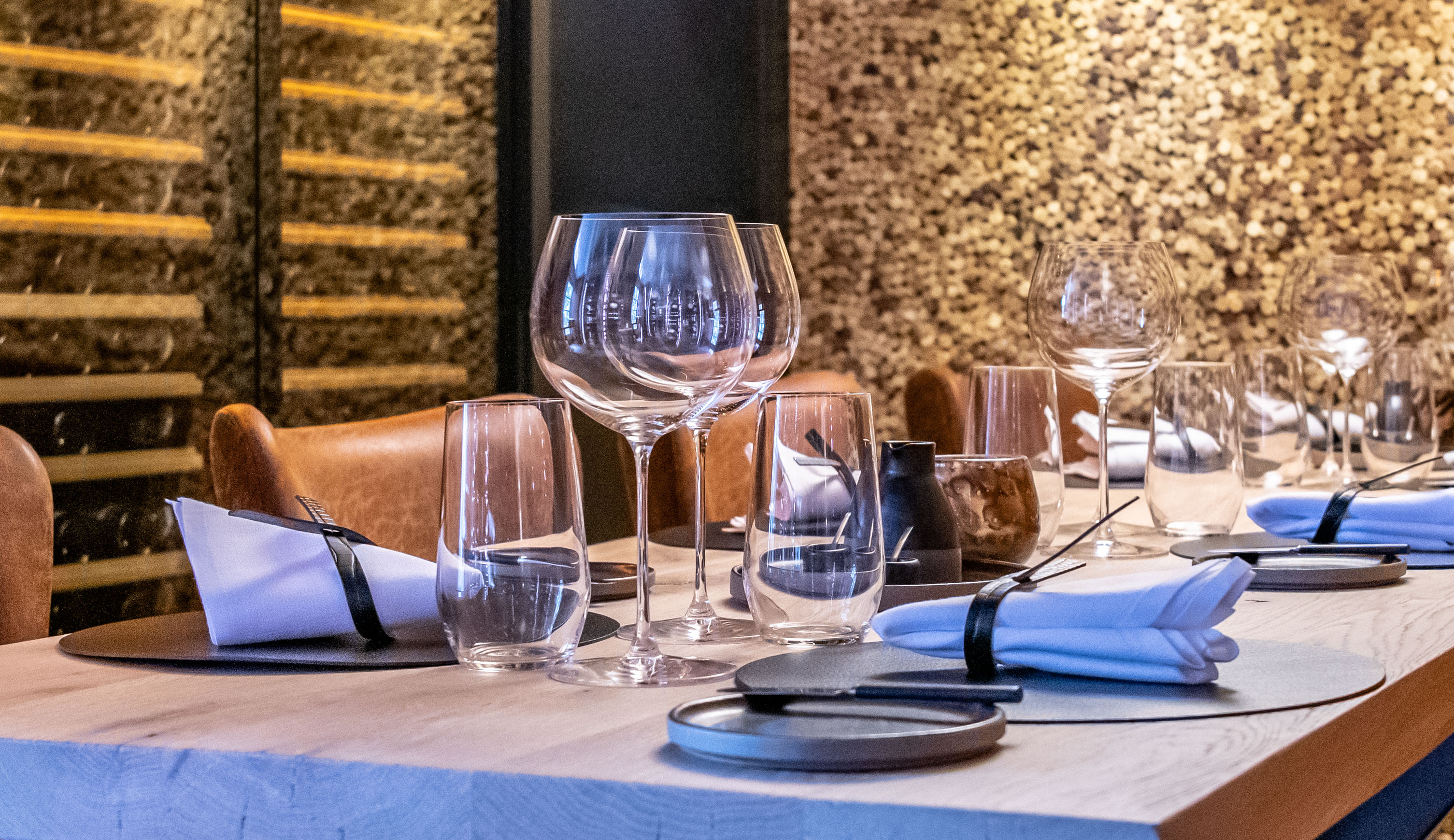 Ook in de nieuw ingerichte wijnkamer kunnen groepen tot maximaal 8 gasten dineren.