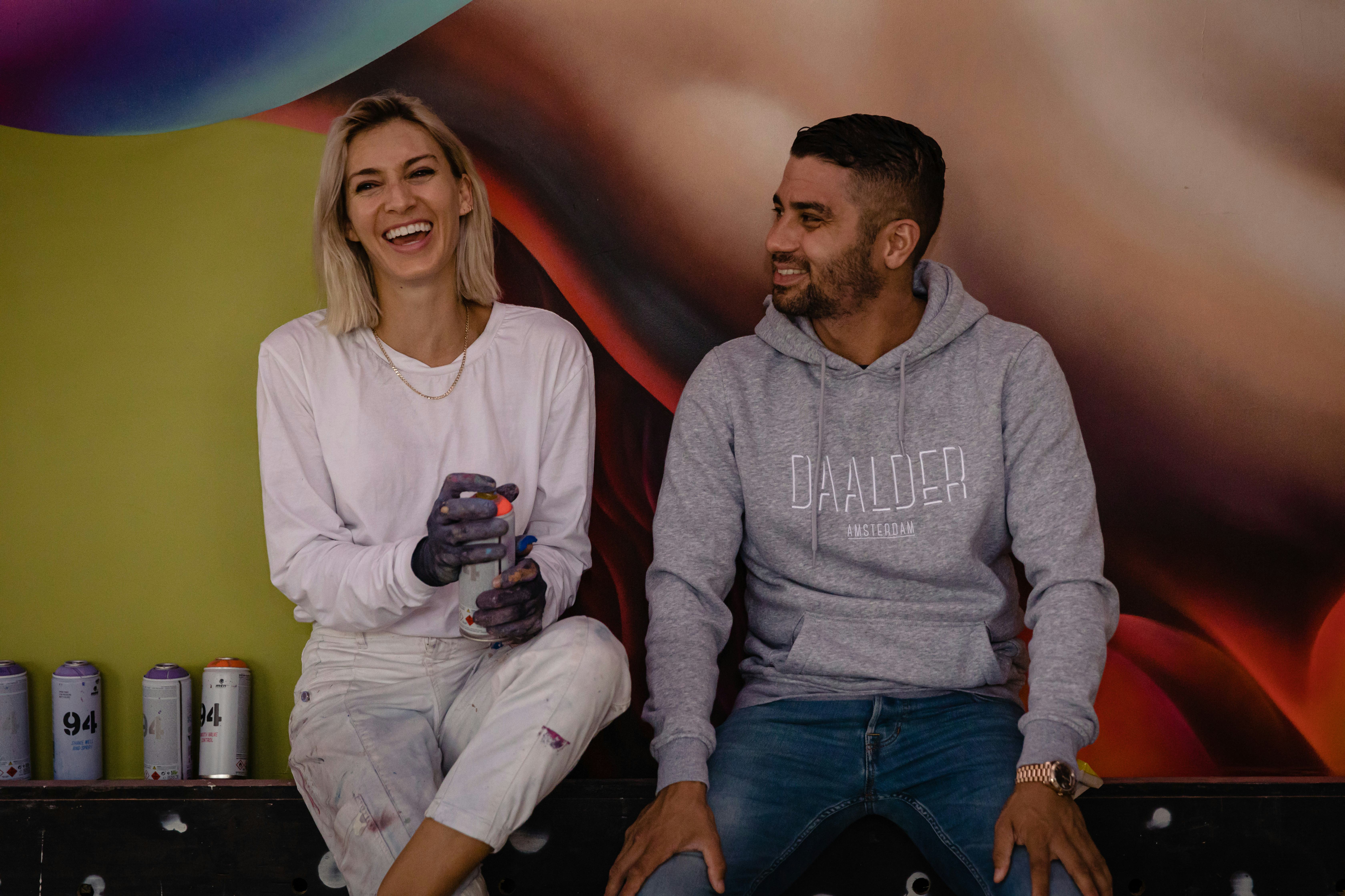 Dennis Huwaë: ‘Amsterdam wordt steeds braver... Wij hebben ons laten inspireren door de rebellie van de jaren ’80. Edel by Dennis is ruw, ruig, ongepolijst. Zonder strak concept. Een Amerikaanse street artist – Elle – bewerkte een wand van Edel voor ons. Gaaf! Ik mocht haar even helpen.