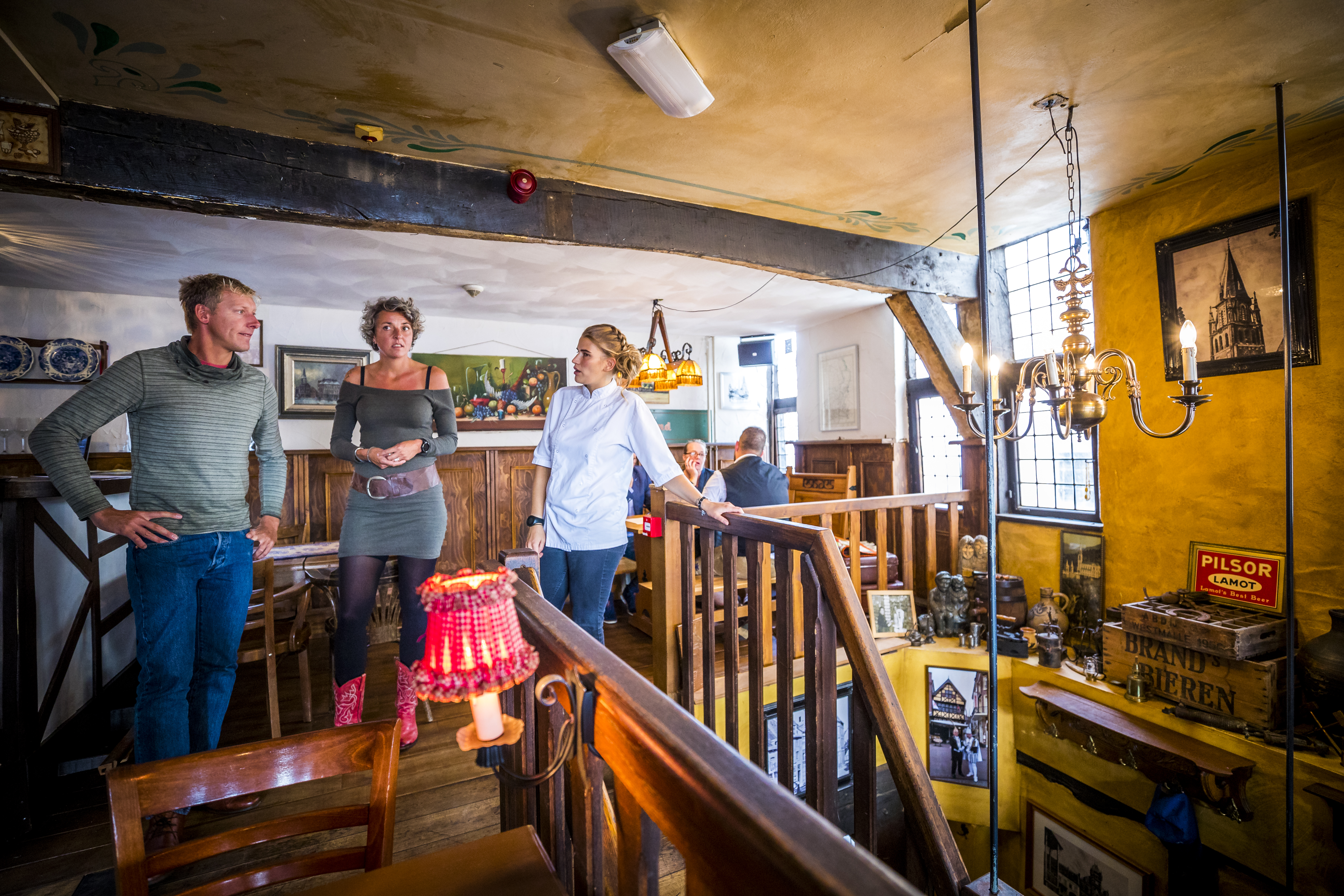Nog meer dan ze al deden, boden ze gasten veel service. ‘We schenken alles uit aan tafel. Ons hele assortiment van ruim 100 bieren. Met die service smaakt het de gast nog beter. In het juryrapport stond een opmerking over eenduidige bedrijfskleding vorig jaar. Nu hebben we allemaal mooie gilets met het logo van de zaak erop. Ook zijn onze parasols buiten nu verankerd in de grond en hebben we een luifel aan de gevel. Dat laatste had wel wat voeten in de aarde. Ons pand stamt uit 1535 en wij huren het van een stichting. Klakkeloos iets aan de gevel monteren is er dus niet bij.’