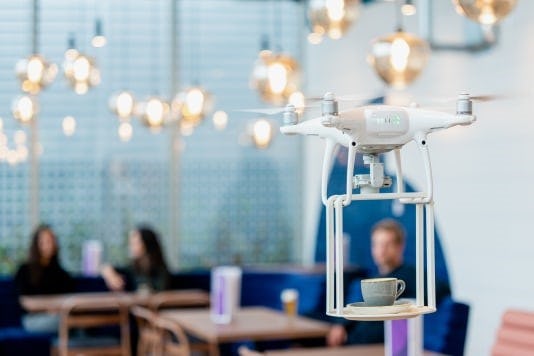 'Bij Yotel draait alles om het herdefiniëren van de horeca door slimme technologie. Onze drone-ober-servicetest van vandaag is slechts één van de manieren waarop we innovatie omarmen om onze gasten buitengewone en leuke ervaringen te bieden', aldus Joy Maroulás, general manager bij Yotel Amsterdam Noord.