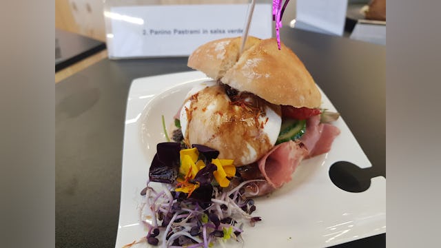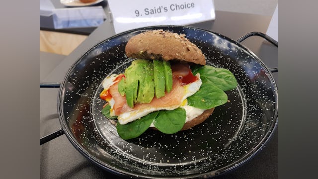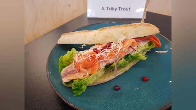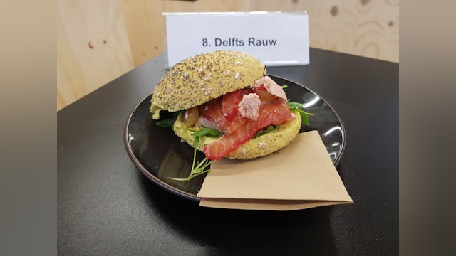 Raquelle Bos, werkzaam bij restaurant Basalt in zorglocatie Ipse de Bruggen in Delft, werd tweede met 'Broodje écht gezond': een foccaciabroodje met zelfgemaakte kruidenkwark, pesto, verschillende gegrilde groenten en tomaten americain.