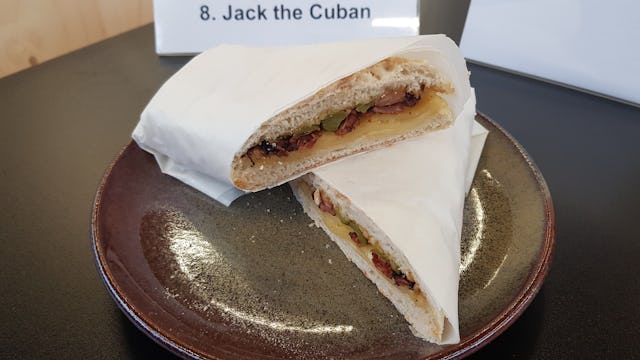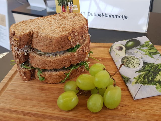 Het broodje dat werd uitgeroepen tot Lekkerste Lunchgerecht Catering is gemaakt van bara, een Surinaamse/Hidoestaans gekruid en gefrituurd deeg. Daarop onder meer vegan kip tandori en pom, een vegetarisch Surinaams gerecht gemaakt van de wortels van de pomtayer-plant. Het broodje wordt afgemaakt met pickles en aardappelsambal.