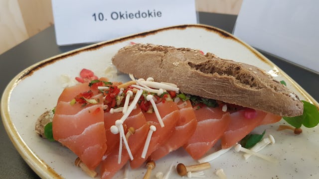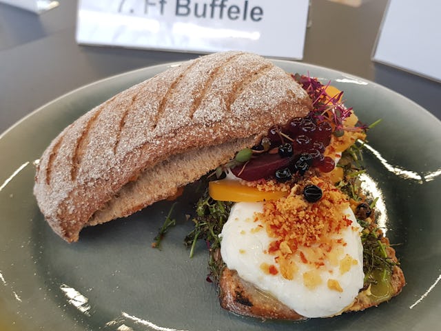 Roland Biermans van Vitam Catering won het zilver met FF Buffele, een broodje met rooksmaak met daarom onder andere pompoen, mozzarella, notenmix, tomaten crumble en kaviaar van port en balsamico
