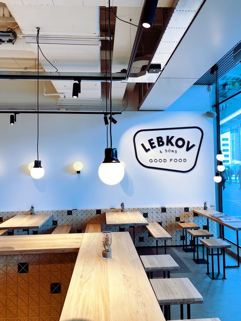 In het nieuwe ontwerp van Lebkov staat de open keuken centraal, zo kan iedereen zien hoe Lebkov’s lemon-poppy seed loaf, lasagna of tomaten soep worden bereid. Ook de sandwich ingrediënten, zoals de pindakaas of hummus, worden op locatie gemaakt.