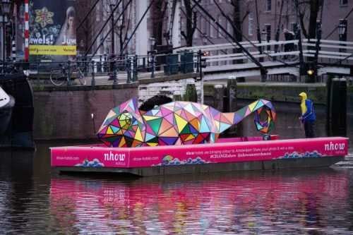 Tijdens een driedaagse grachtentoer zal deze drijvende brand ambassador langs Amsterdamse hotspots als de Hortus Botanicus, het Paleis op de Dam en Artis varen. De nhow kameleon pauzeert zijn reis op het terras op de 10de verdieping van nhow Amsterdam RAI. De kameleon staat symbool voor de merkwaarden van nhow. Daarnaast legt hij het accent op het recent geopende nhow Amsterdam RAI.