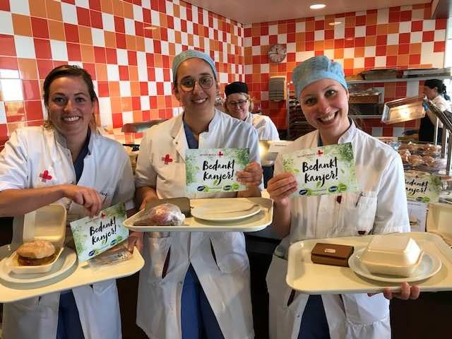 Zorgmedewerkers kregen een vegan burger geserveerd: een Groene Asperge Burger van Sofine, met de 100 procent plantaardige Burger Relish van Remia op een vegan broodje van Panesco geserveerd in een hamburgerbakje van Paardekoper. Met de hulp van de keukenbrigades werden variërend per instelling 50 tot 500 zorgmedewerkers voorzien van een vegan burger. En die viel volgens de bedrijven zeer in de smaak.