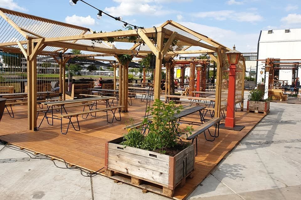 Zij hebben de handen ineen geslagen om een plek neer te zetten die bezoekers een festivalgevoel moet geven. Op het ruime terras komt programmering met optredens en er is voorzien in vermaak als jeu de boulesbanen en tafeltennis.