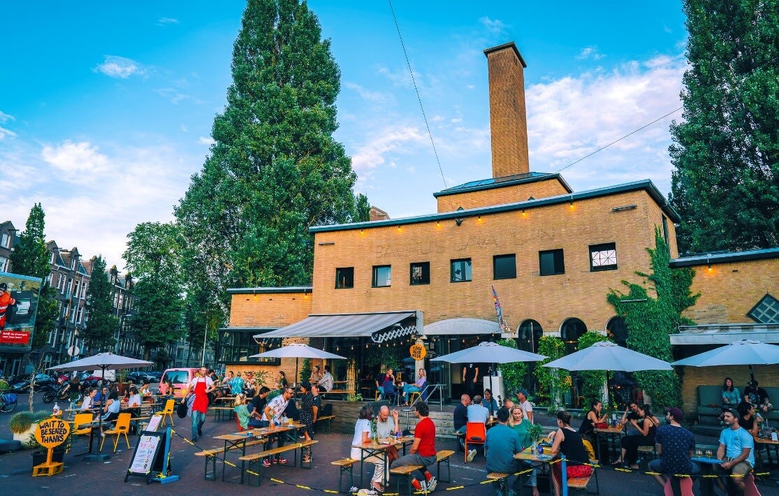 Het Badhuis is een iconisch gebouw in Amsterdam-Oost, gebouwd in 1941 toen het fungeerde als badhuis voor de buurt. In de buurt van het Badhuis zie je veel groen en okergeel terugkomen.