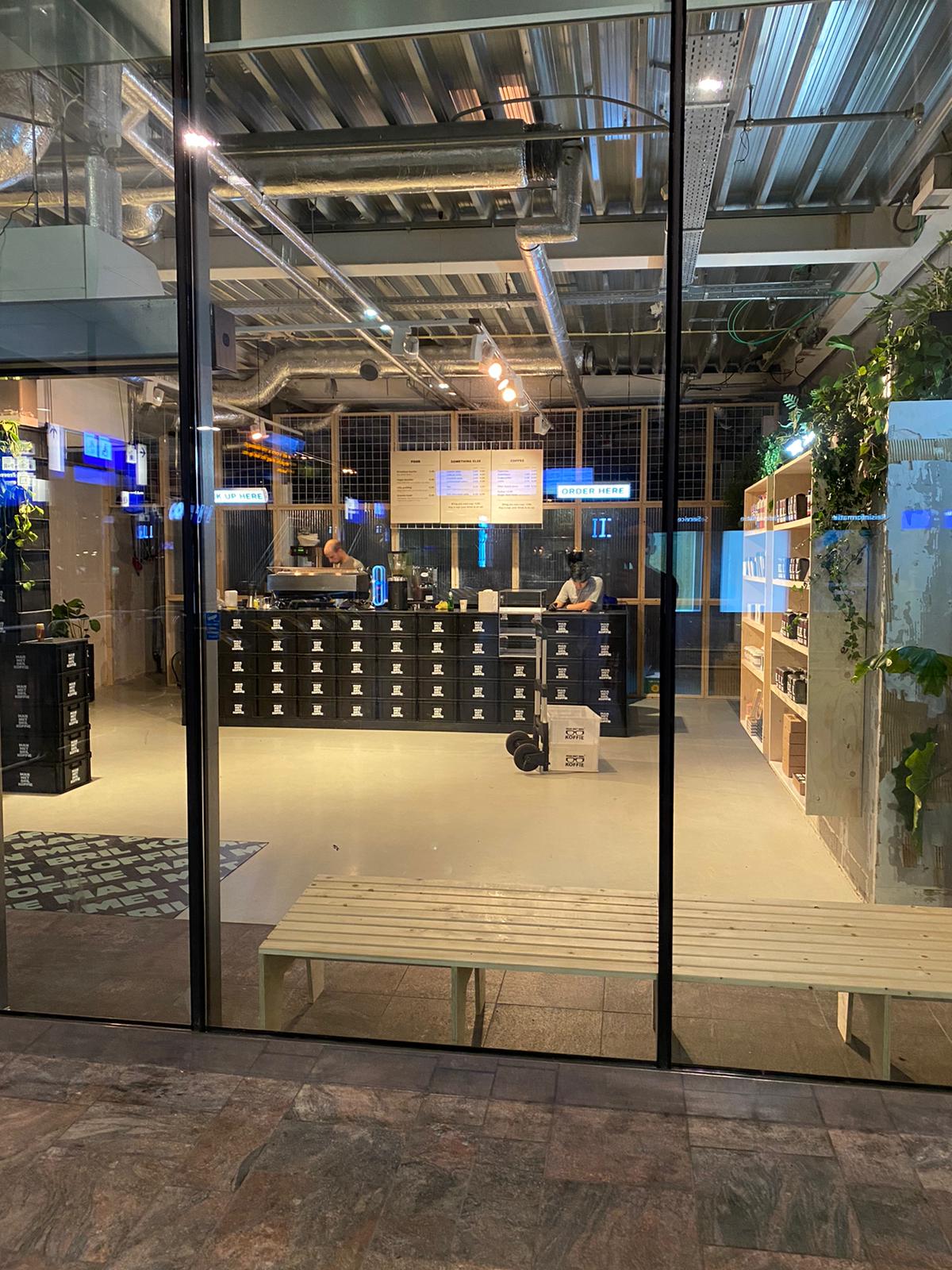 De eerste vestiging van Man met Bril Koffie zit nu vijf jaar aan de Vijverhofstraat (Hofbogen) in Rotterdam. ‘Daar bij ons ‘hoofdkantoor’ hebben we een klassieke koffiebar in een oud pand. We wilden een andere locatie testen, waar het sneller en vluchtiger verloopt,’ verklaart Sharo de vestiging op CS.