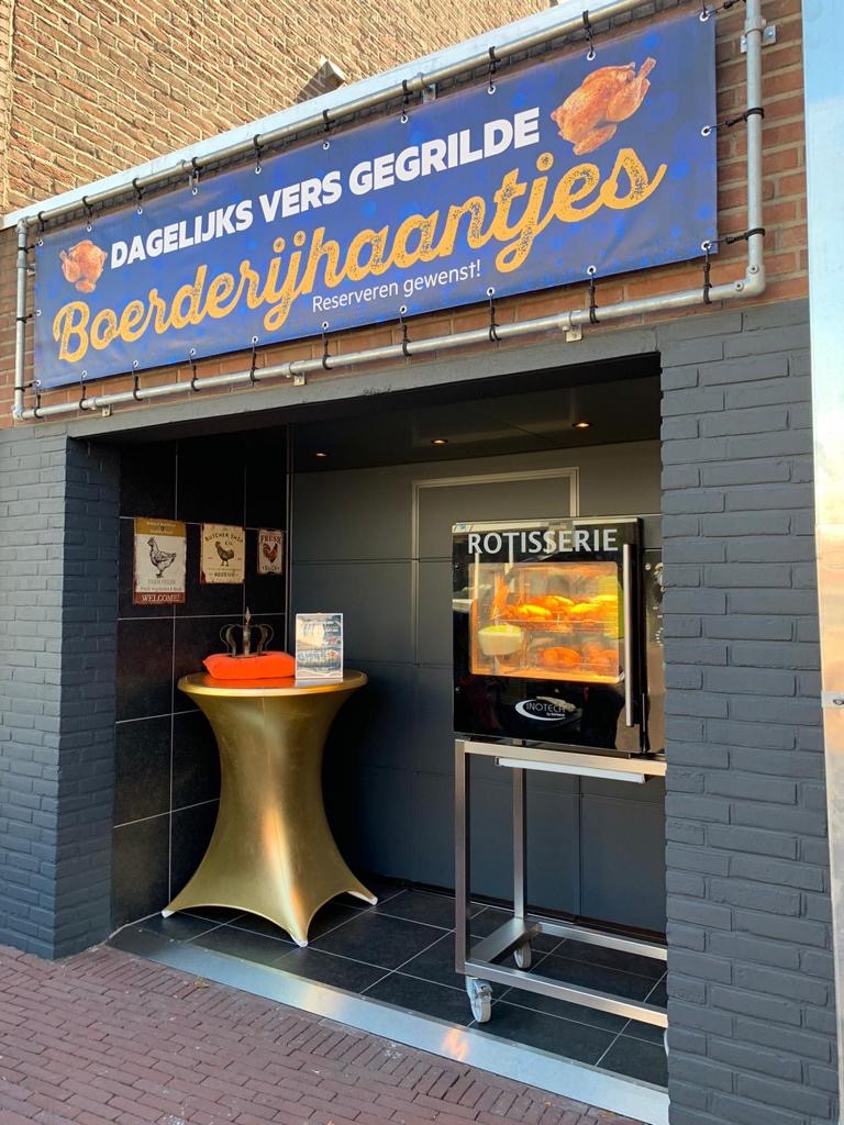 Het winkelend publiek en de vaste gasten reageren erg enthousiast op de vernieuwde cafetaria. ‘We zijn gevestigd tegenover de Plus-supermarkt, die behoorlijk wat bezoekers van de campings uit de omgeving trekt. Die zien en ruiken die haantjes natuurlijk, dus die vlogen de deur uit’, zegt Gielen trots. Het interieur kent een landelijke sfeer en ook daar ontbreken de kippen en hanen niet.