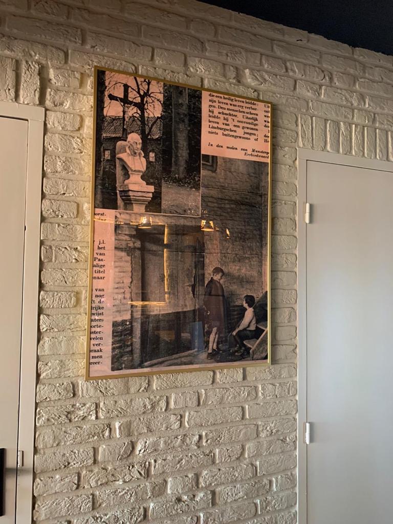 De gevel van het pand bestond deels uit een garagedeur. ‘De garagedeur met muur hebben we een meter naar binnen verplaatst, zodat er als het ware een soort overkapping is ontstaan. Op deze manier konden we de grill met de haantjes droog plaatsen buiten. We konden namelijk geen luifel plaatsen, maar vonden dat de grill niet kon ontbreken in Munstergeleen. Dit was een mooie oplossing.’