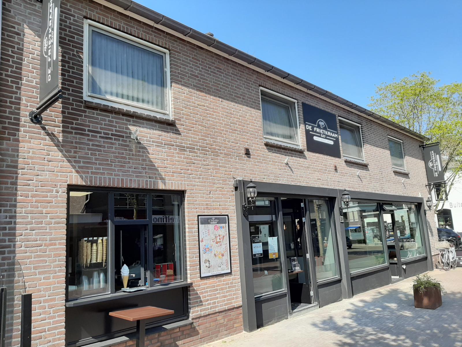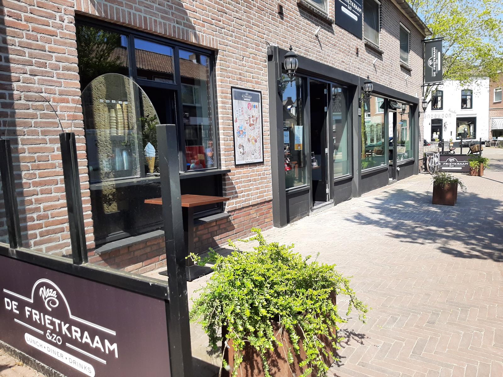 Net zoals in alle cafetaria’s, wordt het restaurantgedeelte niet gebruikt. ‘Jammer, het is zoals het is. Maar we kunnen nog wel iets, er zijn genoeg ondernemers die helemaal niets kunnen.’ Zo verkoopt De Frietkraam & Zo softijs via een loket en zijn de ondernemers sinds de horecasluiting begonnen met maaltijdbezorging.