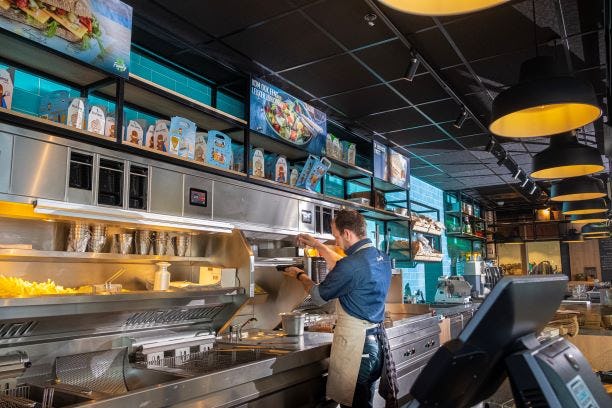 ‘Als er vijf man staan te werken aan de bakwand om een lekkere maaltijd te serveren aan onze gasten, dan is dat toch mooi om te zien?’ zegt ondernemer Sander van Zuidam met een glimlach. ‘We bereiden alles wat we serveren op de bakwand en dus in het zicht van de gasten, behalve de spareribs. Het is een live cooking ervaring, mensen vinden dat hartstikke leuk.’