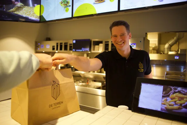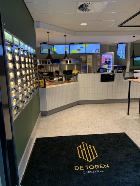 Bas van de Ven, sinds twaalf jaar eigenaar van cafetaria de Toren in het centrum van Breda, heeft naast een nieuw interieur ook een nieuw logo, een nieuwe huisstijl en een nieuwe website gelanceerd. ‘Het plafond, de vloer, de counter, tafeltjes, stoeltje, banken, het zonnescherm; alles is nieuw. Alles behalve de bakwand en de automatiek is vernieuwd.’