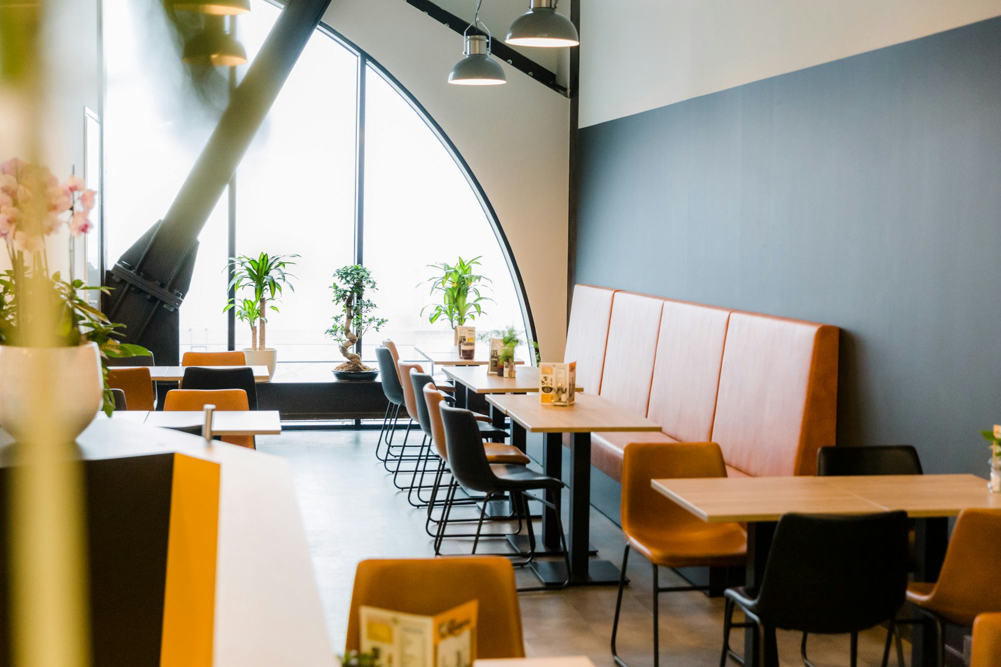 ‘We hebben uitzicht op de treinen en de bussen’, zegt de trotse eigenaar Ya Shi Chen over de dynamische plek die ze bestieren. ‘Zowel voor als achter hebben we grote ramen, waardoor er veel daglicht naar binnen komt.’