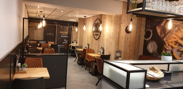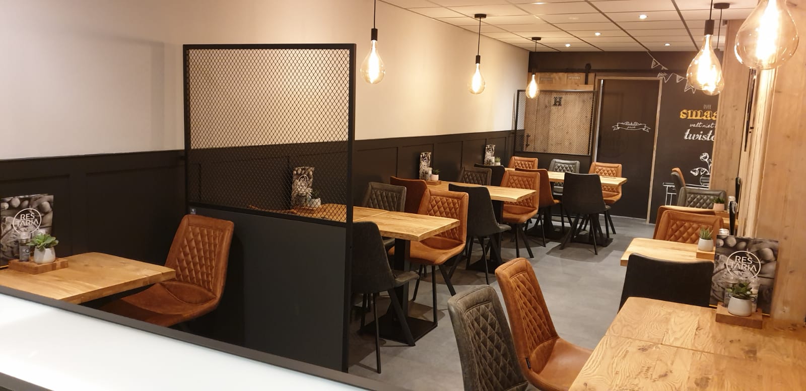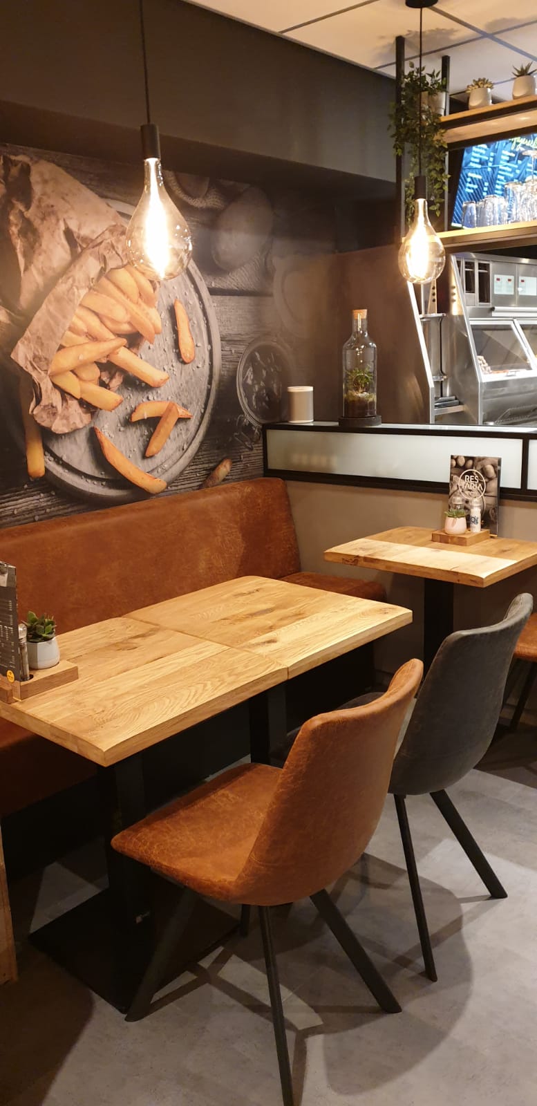 De ondernemers en het team werken vanaf 20 januari niet alleen in een totaal nieuwe omgeving, maar ook met een compleet nieuw menu. Het frietje ‘met’ en de frikandel zijn gebleven, maar het aanbod is flink uitgebreid. Chaigneau: ‘Ik heb het hele Restaria-concept overgenomen: de luxe hamburgers van de bakplaat, Topp’d Potato, de broodjes, uitsmijters, spare ribs. Dat zal best wennen zijn.’